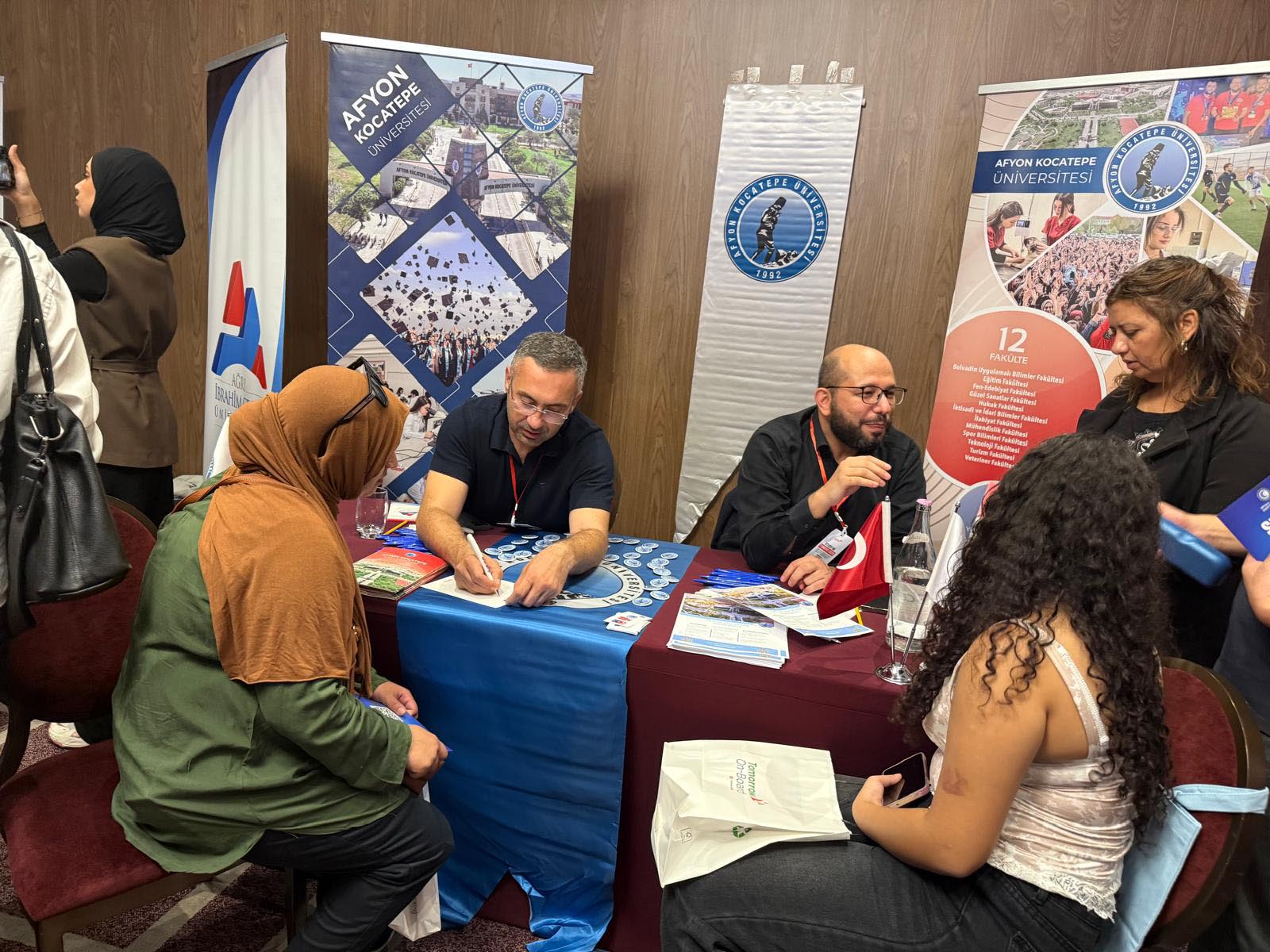 AKÜ Rektörü Prof. Dr. Mehmet Karakaş, Uluslararası Öğrenciler Birim Koordinatörü Dr. Öğretim Üyesi Burak Olur ve İlahiyat Fakültesi Dr. Öğretim Üyesi Faruk Emrah Oruç, kongre ile eş zamanlı düzenlenen Türk Üniversiteleri Tanıtım Fuarı’nda, AKÜ’yü tanıtan bilgilendirme materyallerini binlerce Tunuslu gençle buluşturarak, onları, AKÜ’nün eğitim programları ve uluslararası öğrencilere sunulan imkanlar hakkında bilgilendirdi.