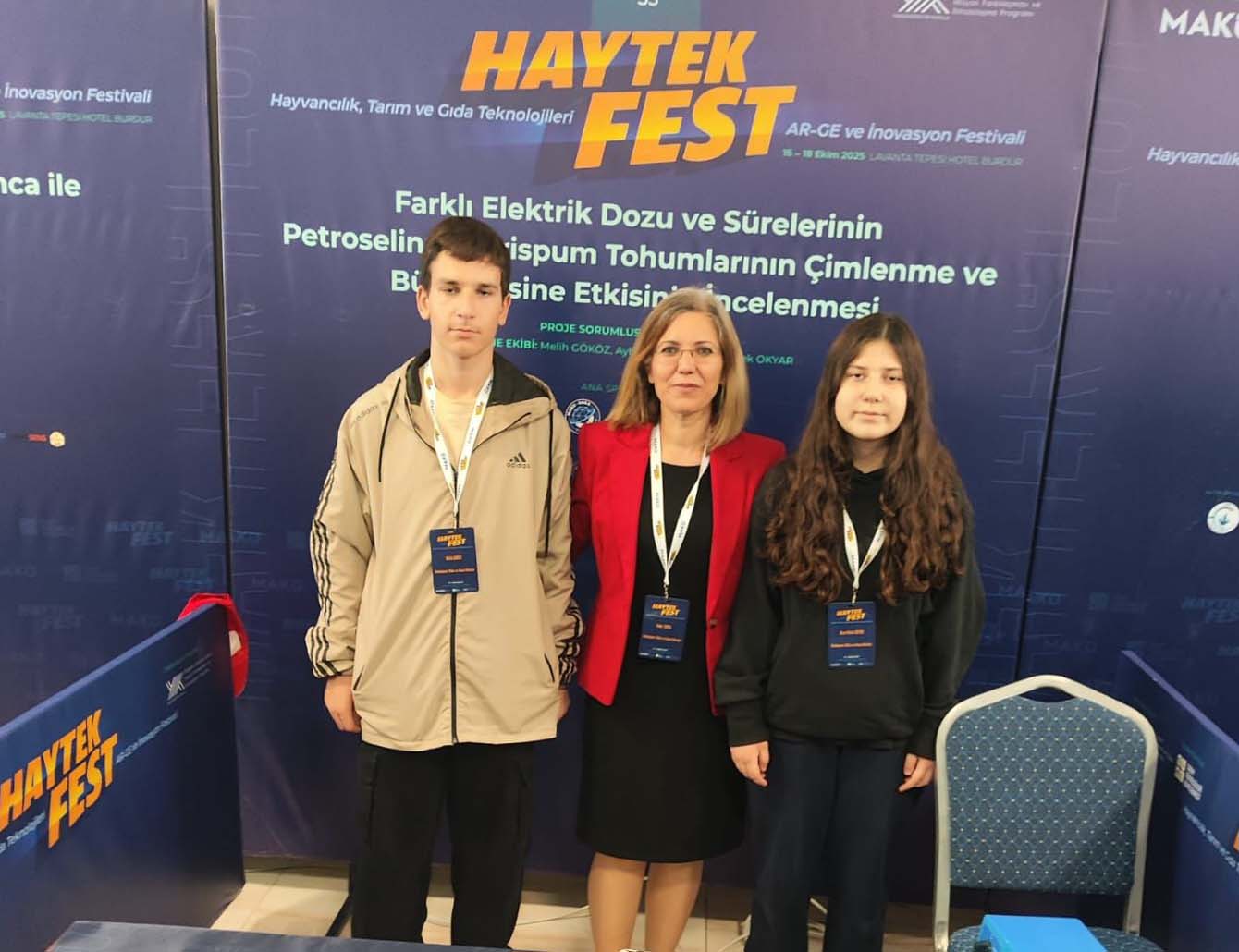 Mehmet Akif Ersoy Üniversitesi'nin ikincisini düzenlediği HAYTEKFEST Tarım-Hayvancılık-Gıda yarışmasında akademisyen ve girişimcilerin yarıştığı yarışmada Afyonkarahisar Dumlupınar BİLSEM öğrencileri danışman öğretmenleri Selda Topal rehberliğinde 3 ekip ve 3 proje ile yarışmaya katıldı.