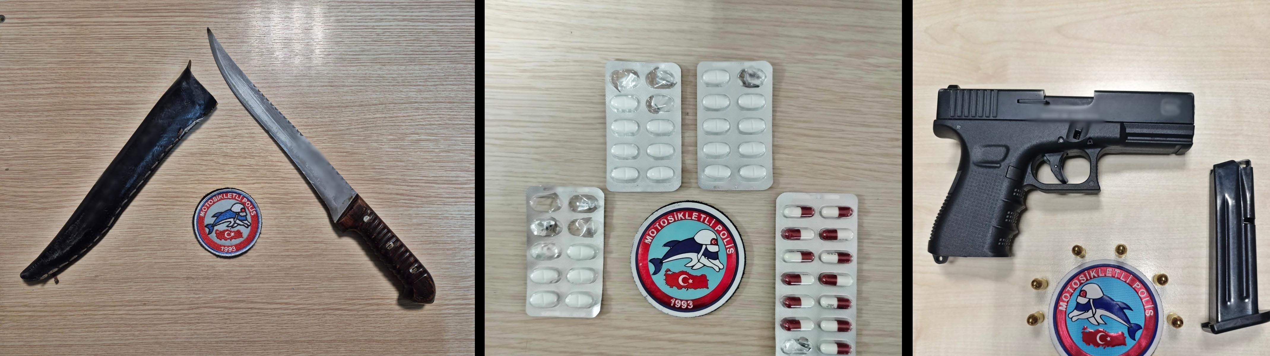 Aramalarda ise 2 tüfek, 2 tabanca, 2 kurusıkı tabanca, 43 adet fişek, 43 bıçak (43 şahsa 126.979 TL idari yaptırım) 157 adet sentetik ecza maddesi, 1,7 gr uyuşturucu madde, 9,7 gr uyuşturucu madde, 1 adet uyuşturucu madde emdirilmiş peçete ele geçirildi.