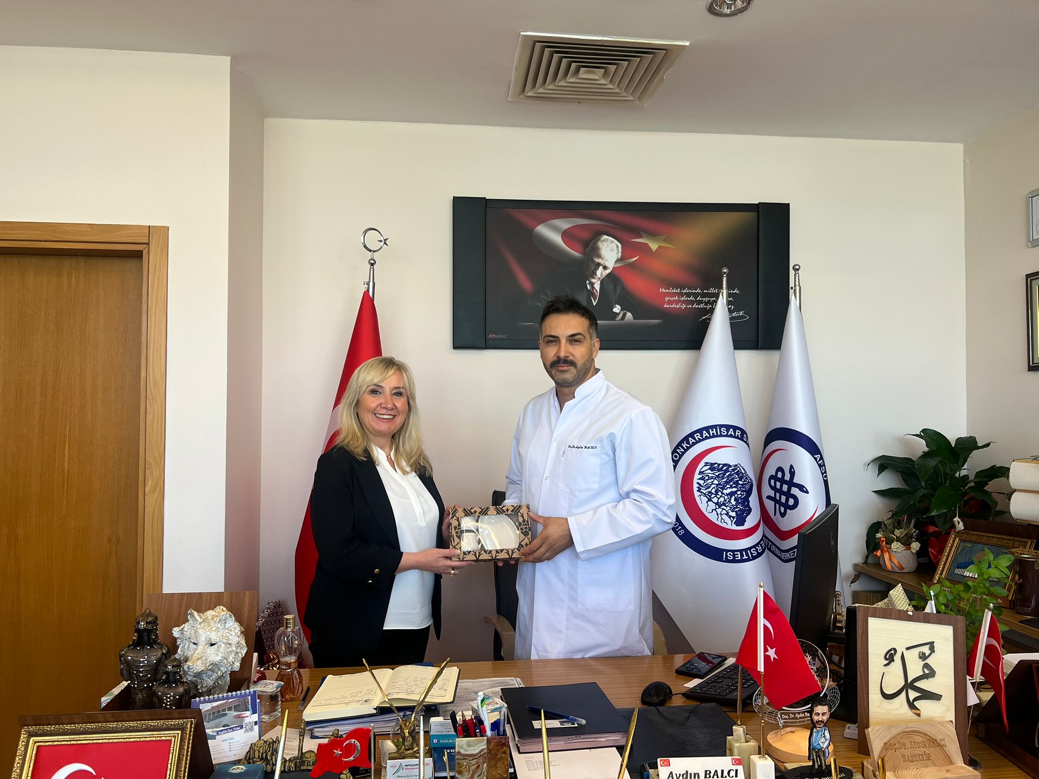 Yılmazaslan, 1. sanayi sitesinde gövde gösterisi yaptıMHP Afyonkarahisar KAÇEP'den (Kadın Aile Çocuk ve Engelli Programları) Sorumlu İl Başkan Yardımcısı Av. Nesrin Çelikbilek'in öncülüğündeki MHP KAÇEP Üyeleri Afyonkarahisar Sağlık Bilimleri Üniversitesi'nin yeni yöneticilerine "hayırlı olsun" ziyaretlerinde bulundular.
