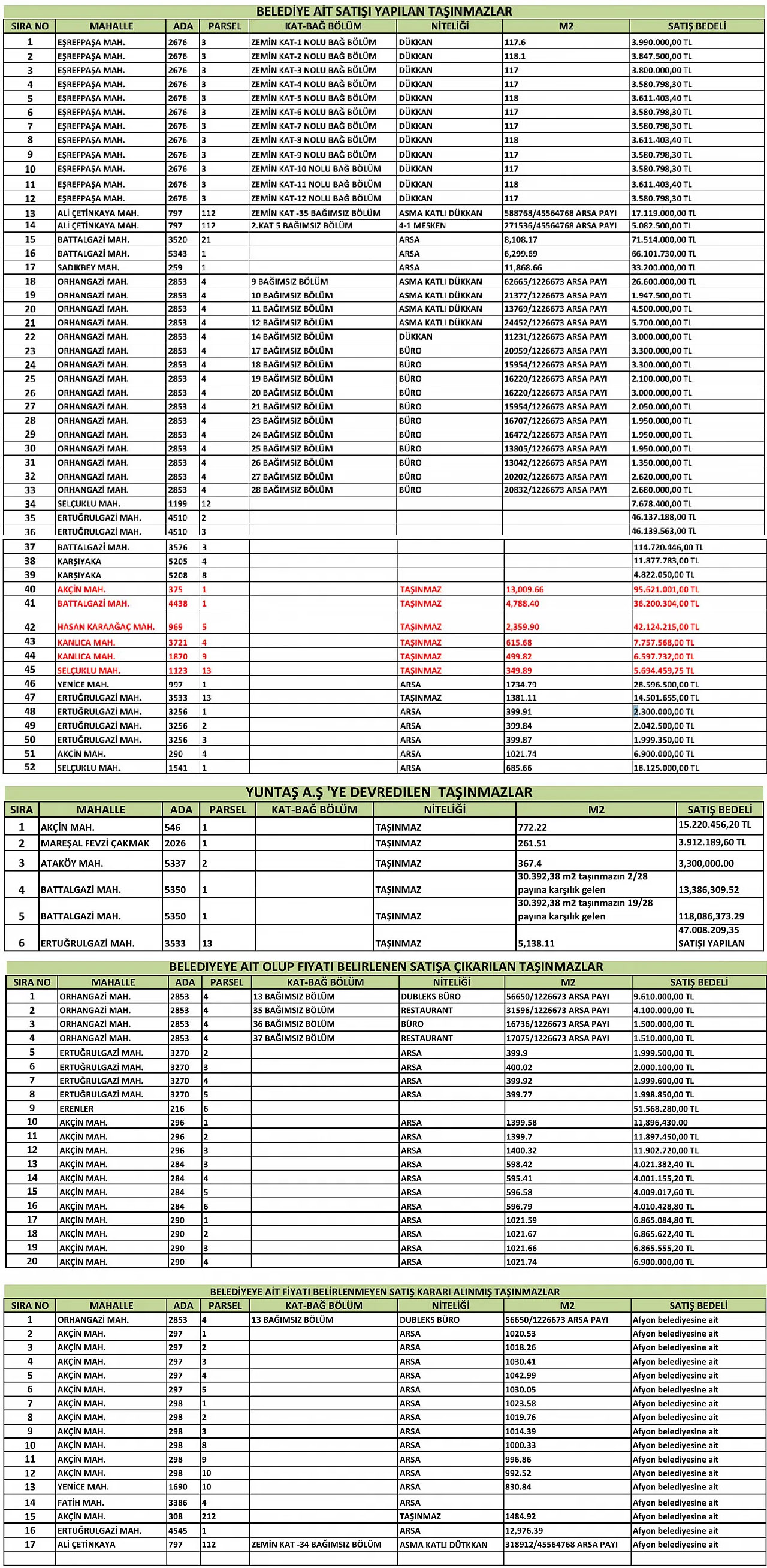 Tüm Afyonkarahisar’ın ortak malı olan bu gayrimenkullerin Belediye Başkanı ve Belediye Meclisi daha görev sürelerinde 2 yılı bile doldurmadan satılmış olması karşısında Afyonkarahisar Belediye Meclisi üyelerinin tutum ve tavırları merak ediliyor.