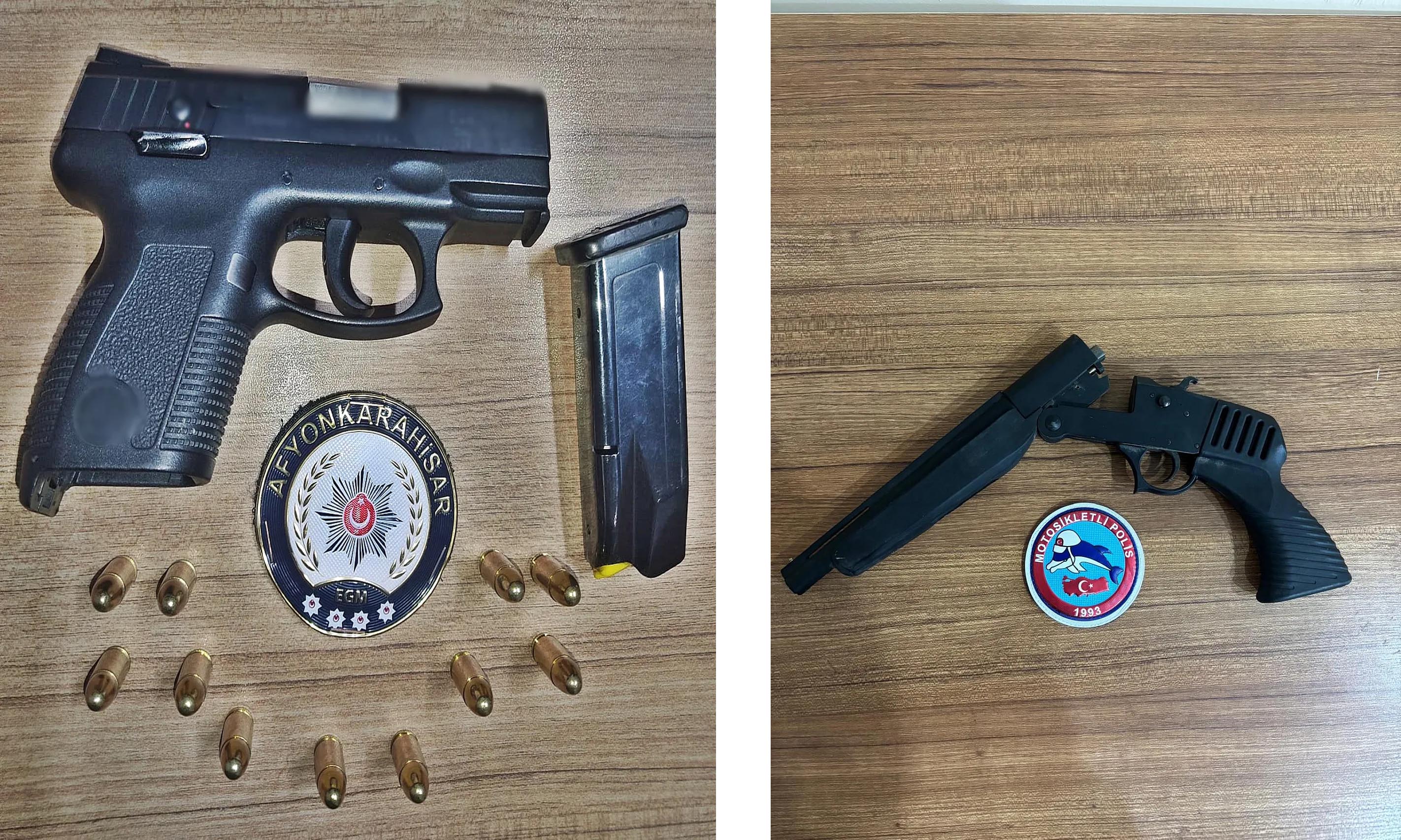 Dinar'da şüpheli araçtan kaleşnikof çıktıAfyonkarahisar İl Emniyet Müdürlüğü ekipleri, son bir haftada aranması olan şahıslara yönelik yapılan çalışmalar, şok uygulamalar, ilimizde bulunan Kız Öğrenci Yurtlarının çevresi, Hıdırlık Mesire Alanı, Erenler çevresi ve İl genelinde yapılan tüm uygulama ve kontrollerde; hapis cezası bulunan 14 şahıs ve ifadesinin alınmasına yönelik 14 şahıs olmak üzere aranması bulunan toplam 28 şahıs yakalandı.