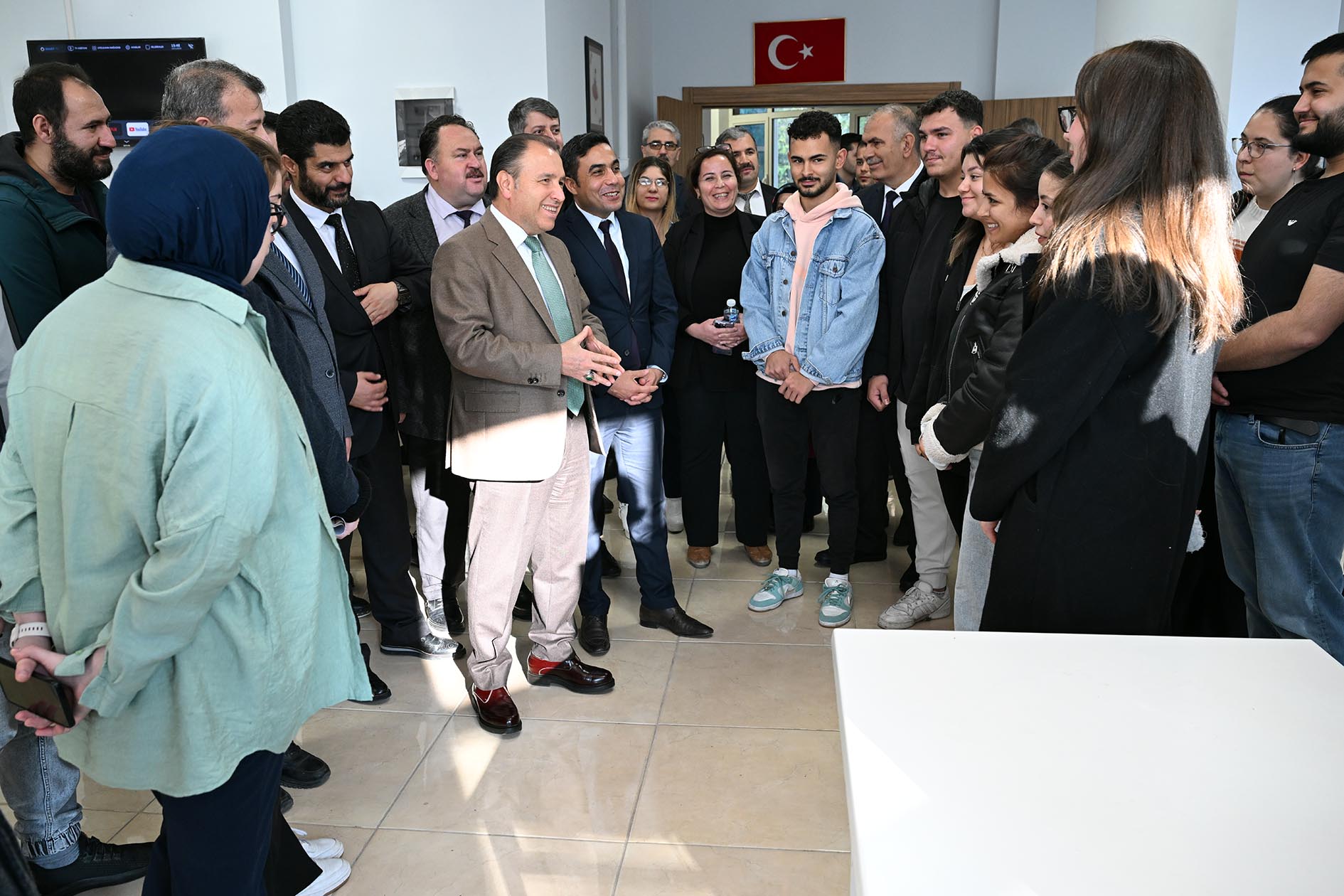 “Öğrencilerimizin talepleri bizim için çok önemli. Çünkü eğitimi alan ve hizmetten yararlanan sizlersiniz. Gördüğünüz eksiklikler veya iletmek istediğiniz konular varsa, söz sizde. Samimi bir ortamda düşüncelerinizi cesurca dile getirebilirsiniz. Biz, bu talepleri imkânlarımız ölçüsünde karşılamaya çalışan bir yönetimiz. Elbette müdürümüz okuldaki ihtiyaç ve talepleri bize iletiyor. Hocalarımızla da görüştük; onların da çeşitli talepleri oldu. Ancak sizlerin, onların fark edemediği farklı ihtiyaçlarınız olabilir. Öğrencilerimizin talepleri zaman zaman hocalarımızınkinden farklı olabiliyor. Bu durum, bizim de olaylara farklı açılardan bakmamızı sağlıyor ve bizler için yol gösterici oluyor. Bu nedenle zaman zaman sizlerle bir araya geliyoruz. Eğer doğrudan görüşme fırsatımız olmazsa, yeni taleplerinizi bölüm başkanlarınıza veya okul yöneticilerinize iletebilirsiniz. Aşılamayan durumlarda ise sosyal medya hesaplarım ve e-posta adresim her zaman sizlere açık. Biz sizler için varız; amacımız, en iyi eğitimi almanızı sağlamak. Unutmayın, ülkemizin geleceği sizlersiniz.”