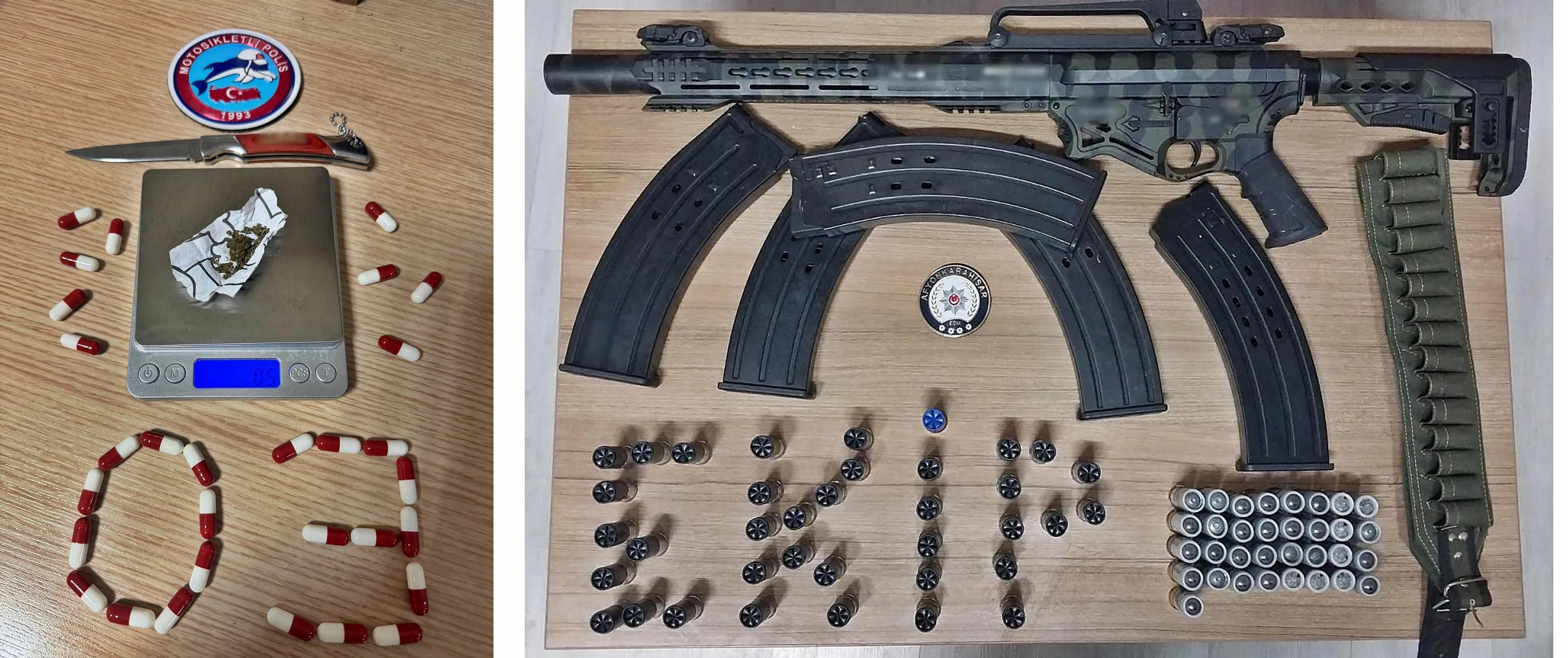 Bu uygulama ve kontrollerde 8 bin 356 şahıs, 2.303 araç sorgusu yapıldı; 1 tabanca, 1 kurusıkı tabanca, 7 tüfek, 84 fişek, 33 bıçak (33 şahsa 97.449 TL idari yaptırım), 4 adet sentetik ecza maddesi, 7,3 gr uyuşturucu madde, 4 adet uyuşturucu madde emdirilmiş peçete ele geçirildi. Toplam; 63 şahsa 250.079 TL, 69 araca 185.000 TL idari para cezası uygulandı.