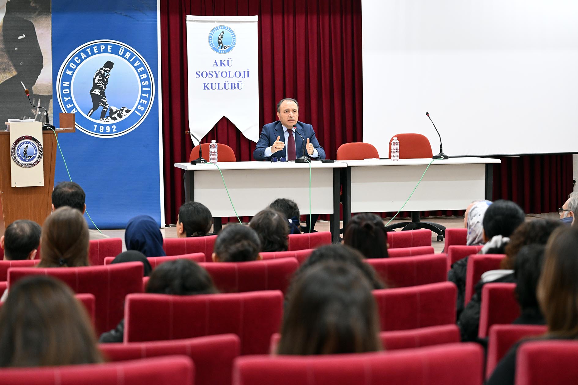 AKÜ Rektörü Prof. Dr. Mehmet Karakaş, “Sosyolojinin Dünü ve Bugünü” isimli konuşmasında sosyolojinin ortaya çıkış koşullarından, üstlendiği temel role ve güncel kuramsal yönelimlere kadar geniş bir perspektif sunarak disiplinin, geçmişten bugüne izlediği dönüşümsel serüvenini geniş bir çerçevede ele aldı.
