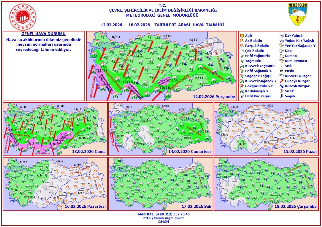 “Perşembe günü ilk saatlerde başlayacak yağışların, öğle saatlerine kadar yüksek kesimlerde karla karışık yağmur ve kar şeklinde görülebileceğinden, geçitler bölgelerindeki karayollarında ulaşımda yaşanabilecek aksamalara karşı dikkatli ve tedbirli olunması gerekmektedir.”