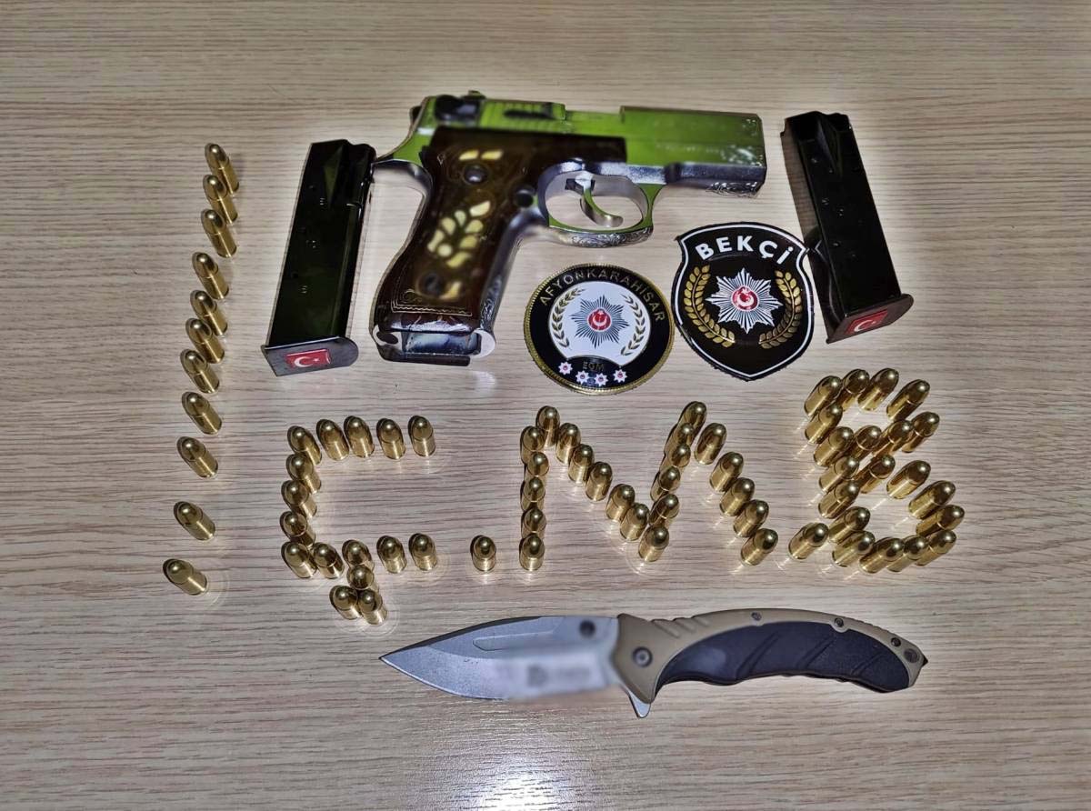 Afyonkarahisar İl Emniyet Müdürlüğü ekiplerince 16-23 Mart 2026 tarihleri arasında gerçekleştirilen geniş kapsamlı denetimlerde, aranan 17 şahıs yakalanırken çok sayıda silah ve mühimmat ele geçirildi. Emniyet güçlerince kız öğrenci yurtları çevresi, Hıdırlık Mesire Alanı ve Erenler bölgesi başta olmak üzere il genelinde yürütülen şok uygulamalarda 6 bin 328 şahıs ve 1768 araç sorgulandı. Denetimlerde hapis cezası bulunan 8 kişi ile ifade vermeye yönelik aranma kaydı olan 9 kişi olmak üzere toplam 17 aranan şahıs yakalandı. Yapılan aramalarda 3 tüfek, 2 tabanca, 1 kurusıkı tabanca, 95 fişek ve 14 bıçak ele geçirilirken, bıçak taşıyan 14 şahsa 51 bin 870 TL idari para cezası uygulandı. Toplamda ise 21 şahsa 104 bin 186 TL, 69 araca ise 782 bin 948 TL cezai işlem yapıldı.