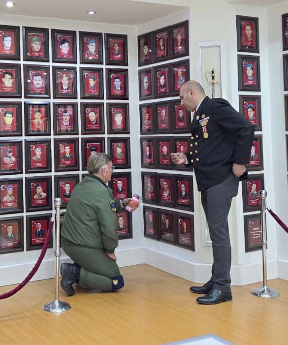 Duygusal anların yaşandığı ziyarette Korgeneral Kadıoğlu, Şehit Emre Sayın’ın fotoğrafı önünde diz çökerek fotoğrafa dokundu ve saygıyla andı. Uzun süre fotoğrafın başında kalan Kadıoğlu’nun derin bir hüzün yaşadı.