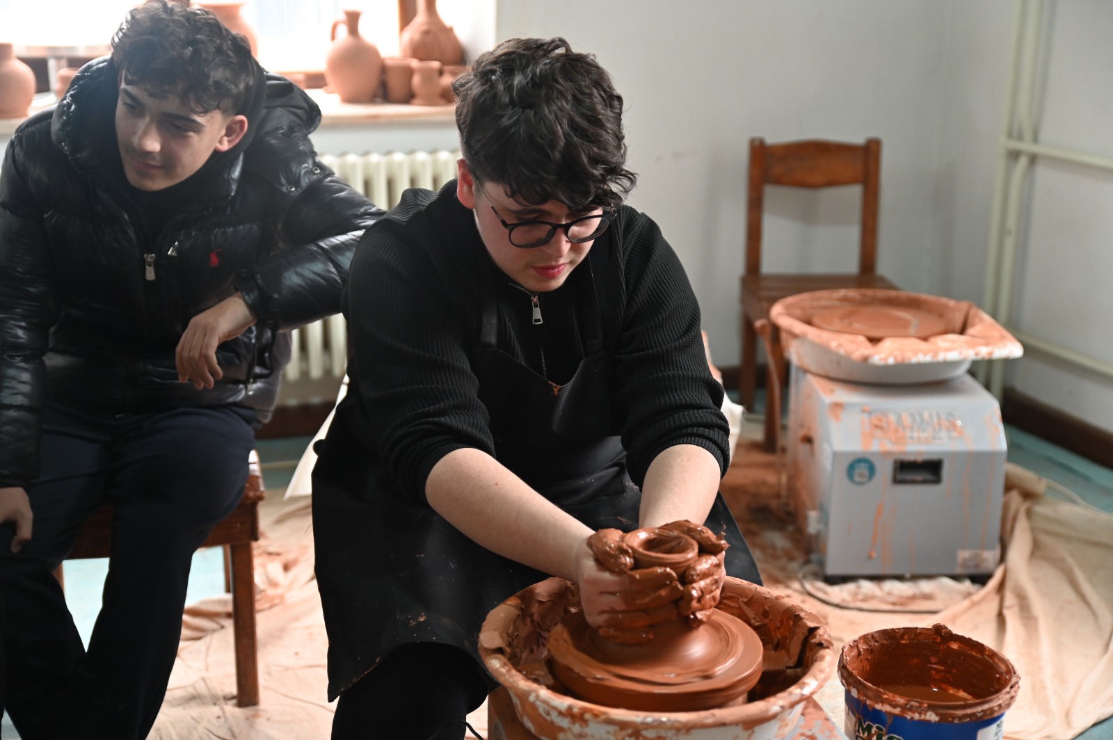Ziyaret kapsamında usta eğiticilerden çömlekçiliğin tarihçesi ve teknikleri hakkında bilgi alan öğrenciler, teorik bilgiyi pratiğe dökme şansı yakaladı. Çamurun yoğrulmasından tezgâhta şekil almasına kadar tüm süreçleri pürdikkat takip eden gençler, daha sonra turnetlerin başına geçerek kendi eserlerini tasarladı. Geleneksel mirasa dokunmanın heyecanını yaşayan öğrenciler, el sanatlarının sabır ve ustalık gerektiren yolculuğuna bizzat şahitlik ederek keyifli ve öğretici bir gün geçirdi.