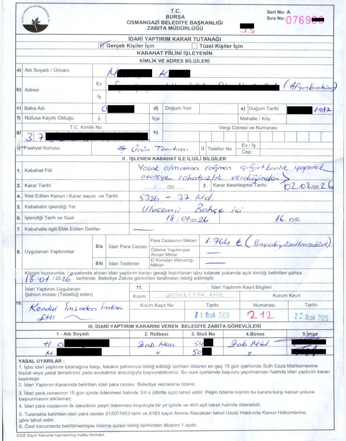 Anadolu Gençlik Derneği (AGD) Afyonkarahisar Şubesi Liseler Komisyonu üyesi gençler geçtiğimiz günlerde gerçekleştirdiği Bursa gezisinde skandal bir olayla karşılaştılar. Bursa Osmangazi Belediyesi Zabıta Müdürlüğü ekipleri, AGD Afyonkarahisar Şubesi mensubu liseli gençlere, Bursa Ulu Camii çevresinde tekbir getirdikleri gerekçesiyle ceza yazdı.