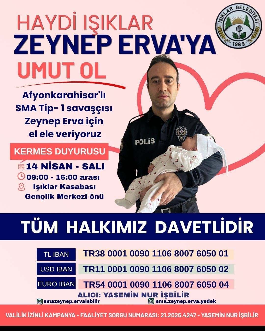 Işıklar Belediyesi tarafından organize edilen kermes, 14 Nisan 2026 Salı günü gerçekleştirilecek. Işıklar Kasabası Gençlik Merkezi önünde kurulacak olan stantlar, sabah saat 09:00 ile 16:00 arasında ziyaretçilerini ağırlayacak. Kermesten elde edilecek tüm gelirin, Zeynep Erva’nın tedavi fonuna aktarılacağı bildirildi.