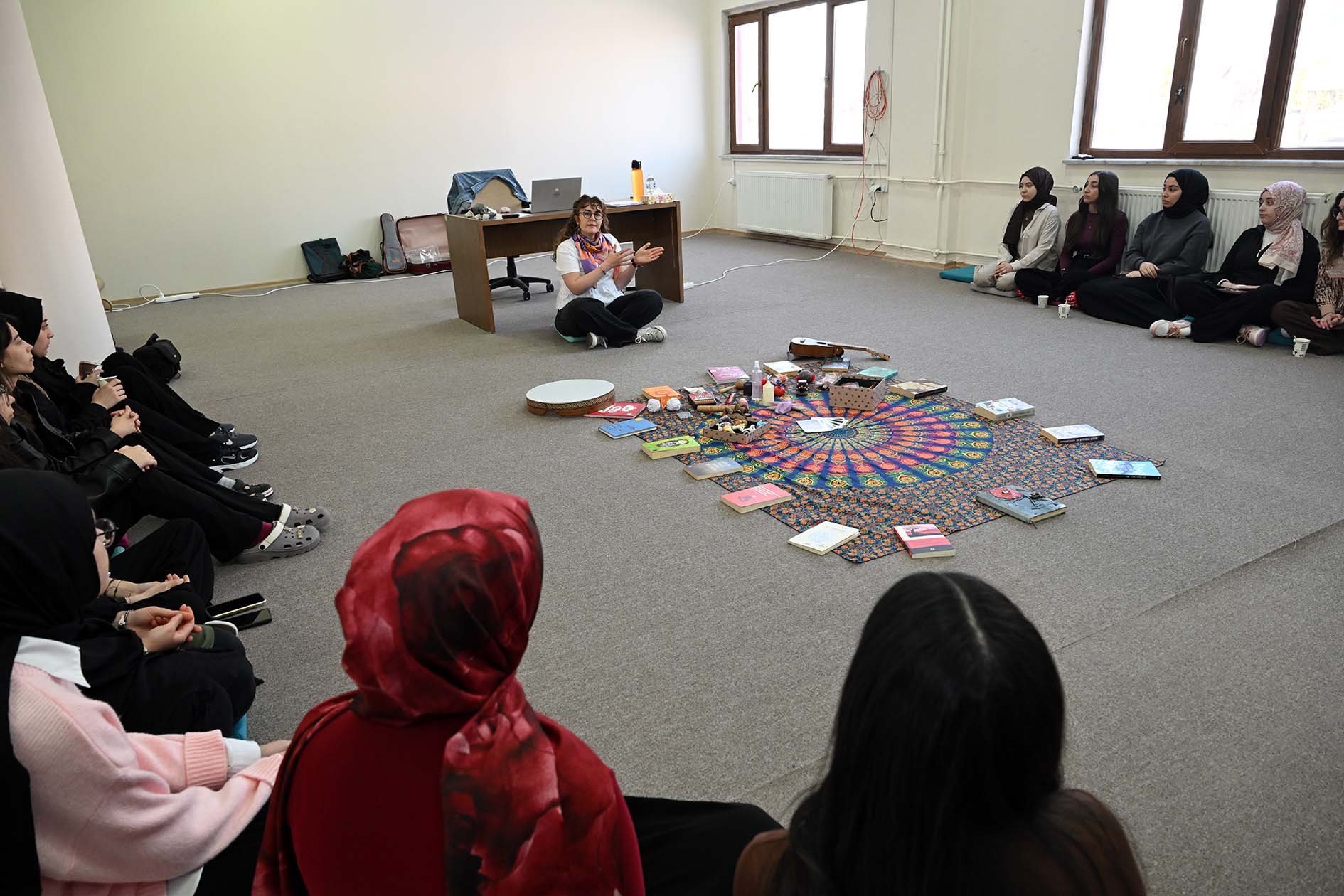 Dr. Öğretim Üyesi Merve Arabacı, masal anlatıcılığına dair düzenlenen etkinlikte, masalların sadece çocuklar için değil, yetişkinlerin kişisel gelişimi ve içsel yolculuğu için de kritik bir rol oynadığını belirtti. Masalların yetişkinler tarafından da dinlenebileceğini belirten Arabacı, masal anlatma sanatının kişinin kendi karakterini keşfetmesinde bir rehberlik görevi üstlendiğini kaydetti. Arabacı, “Masal anlatıcılığı sadece teknik bir öğretim değil, aynı zamanda içsel bir yolculuk. Biz bu sanat dalı çocukların duygusal farkındalıklarını arttırmada, gelişim etkileyen faydalı bir teknik” dedi. Masal anlatımında anlatıcı ile dinleyici arasında etkileşimin olduğunu söyleyen Arabacı, “Masal anlatımı, jest ve mimiklerle destekleniyor. Olaylar hayal dünyasında canlanıyor. Dinleyici sadece dinlemiyor aynı zamanda olayı yaşıyor. Buna zihinde yaratma sanatı da denilebilir” diye konuştu.