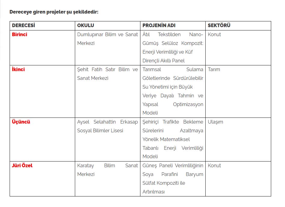 Başvurular, akademisyenlerden oluşan bir jüri tarafından değerlendirildi. Değerlendirme sonucunda, üç proje dereceye girerken, bir proje de jüri özel ödülüne layık görüldü.